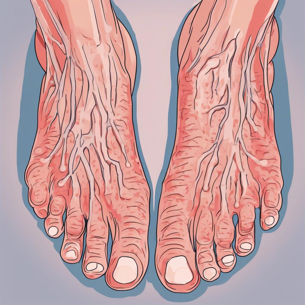 - Symetryczne występowanie zmian na skórze obu stóp.